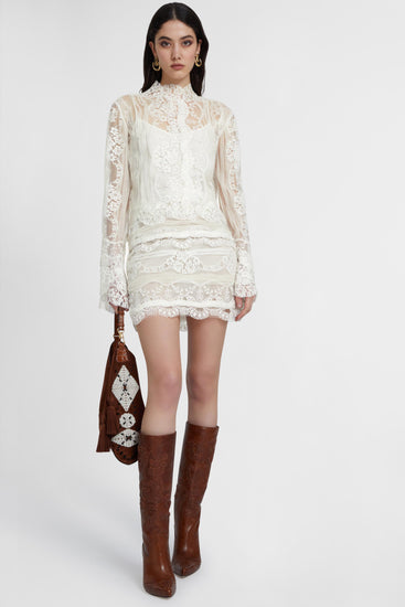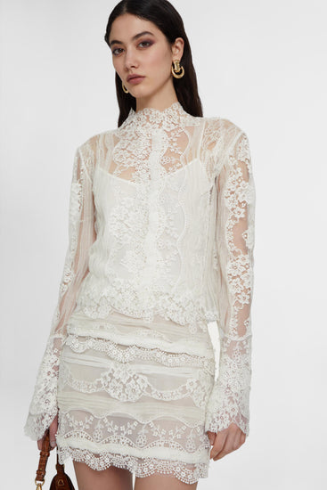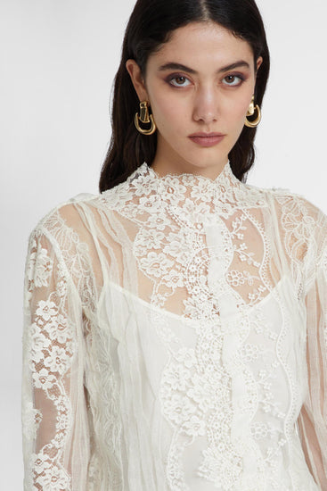 Romantique et sophistiquée, cette chemise en pure soie est ornée d'inserts en dentelle raffinés appliqués à la main. Le motif en dentelle, exclusif à notre collection, s'étend élégamment sur toute la surface, créant de délicats jeux de transparence et de texture. Sa coupe courte, sa silhouette ajustée et ses larges poignets lui confèrent une allure féminine et contemporaine. Une pièce parfaite pour les grandes occasions ou pour rehausser avec style les tenues les plus essentielles.