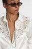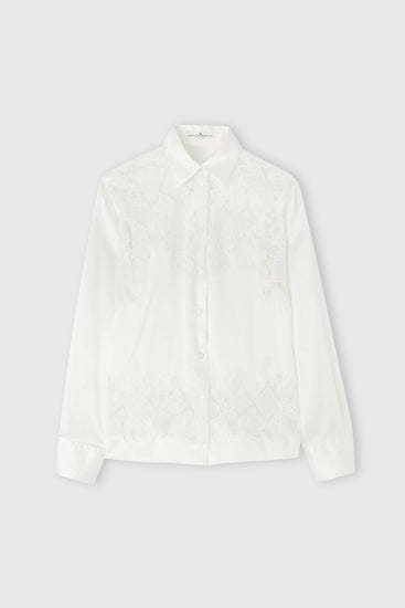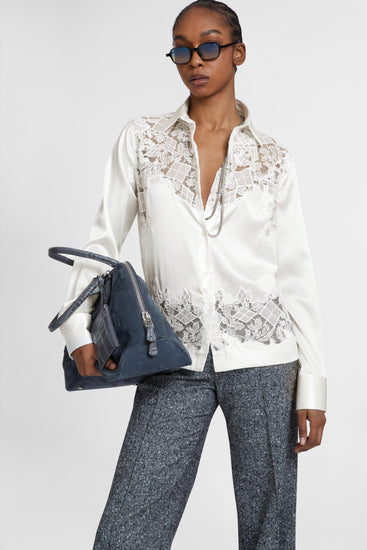 Chemise en soie extensible avec empiècement en dentelle brodée à la main