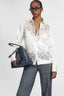 Chemise en soie extensible, ornée d'un délicat empiècement en dentelle entièrement réalisé à la main. Son design exclusif et original alterne motifs floraux et géométries en losanges, créant un jeu de transparences raffiné qui caresse le haut de la poitrine avec une légèreté extraordinaire. Une pièce de créateur pour celles qui aiment se démarquer avec grâce et style.
