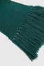 La finition frangée sur le bas, réalisée dans la même matière et la même couleur que l'écharpe, apporte du mouvement et une touche artisanale au modèle. Le choix de fibres fines sublime la tridimensionnalité du point et crée un effet doux et matière qui définit le caractère du vêtement.