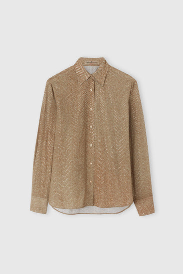 Chemise en viscose ornée de cristaux appliqués à la main et d'un motif à chevrons gris.