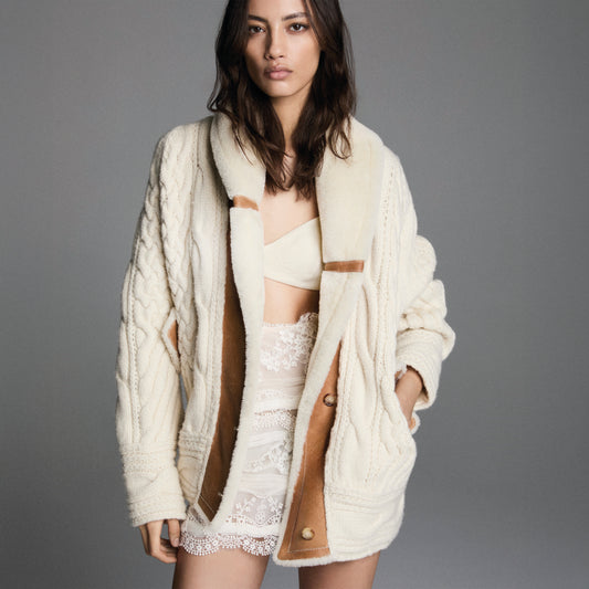Maglione in misto lana vergine e cashmere con trecce e cristalli
