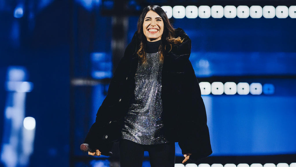 Per la finale di X Factor, Giorgia porta sul palco un look Ermanno Scervino che unisce protezione, brillantezza e un'eleganza dal carattere deciso.