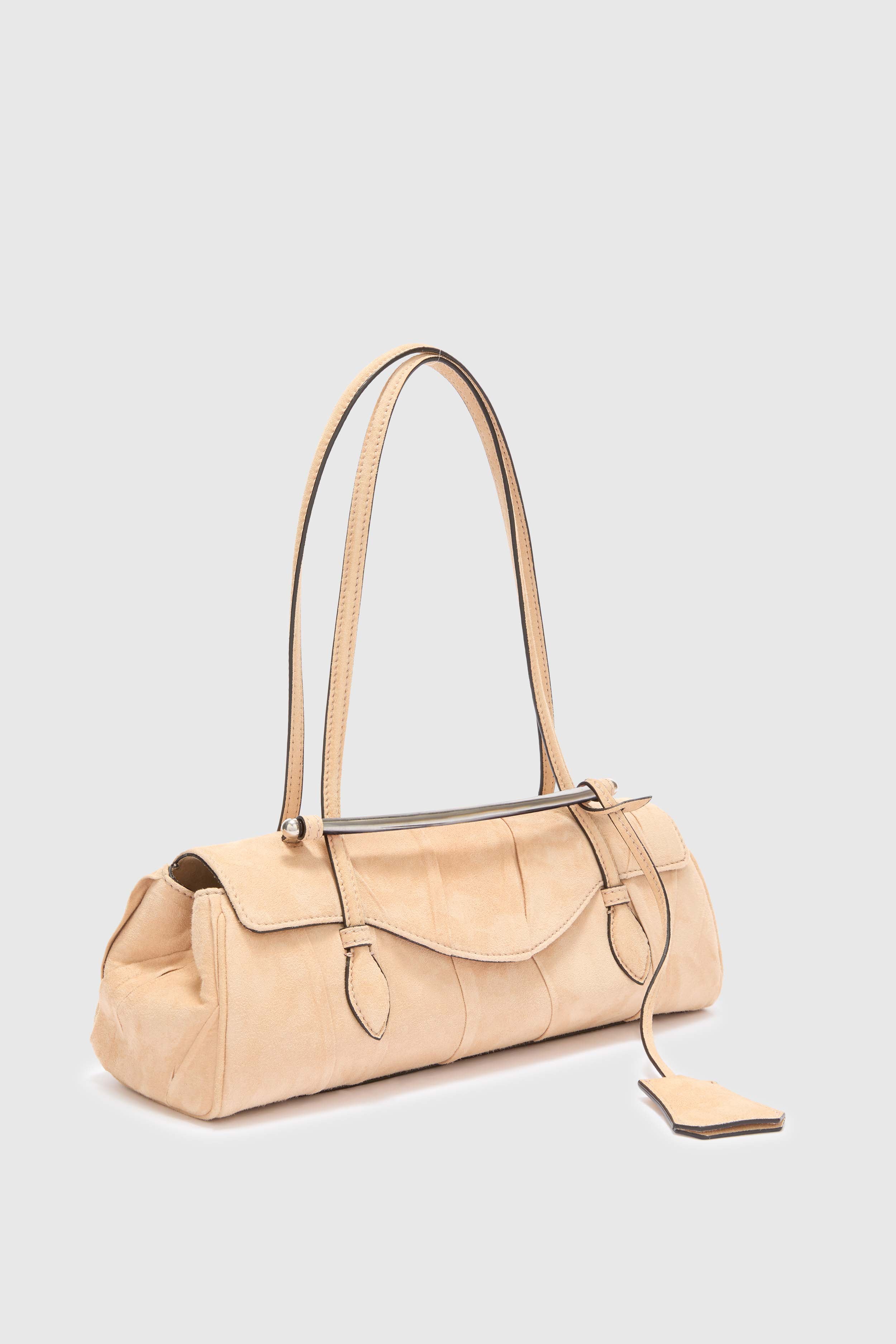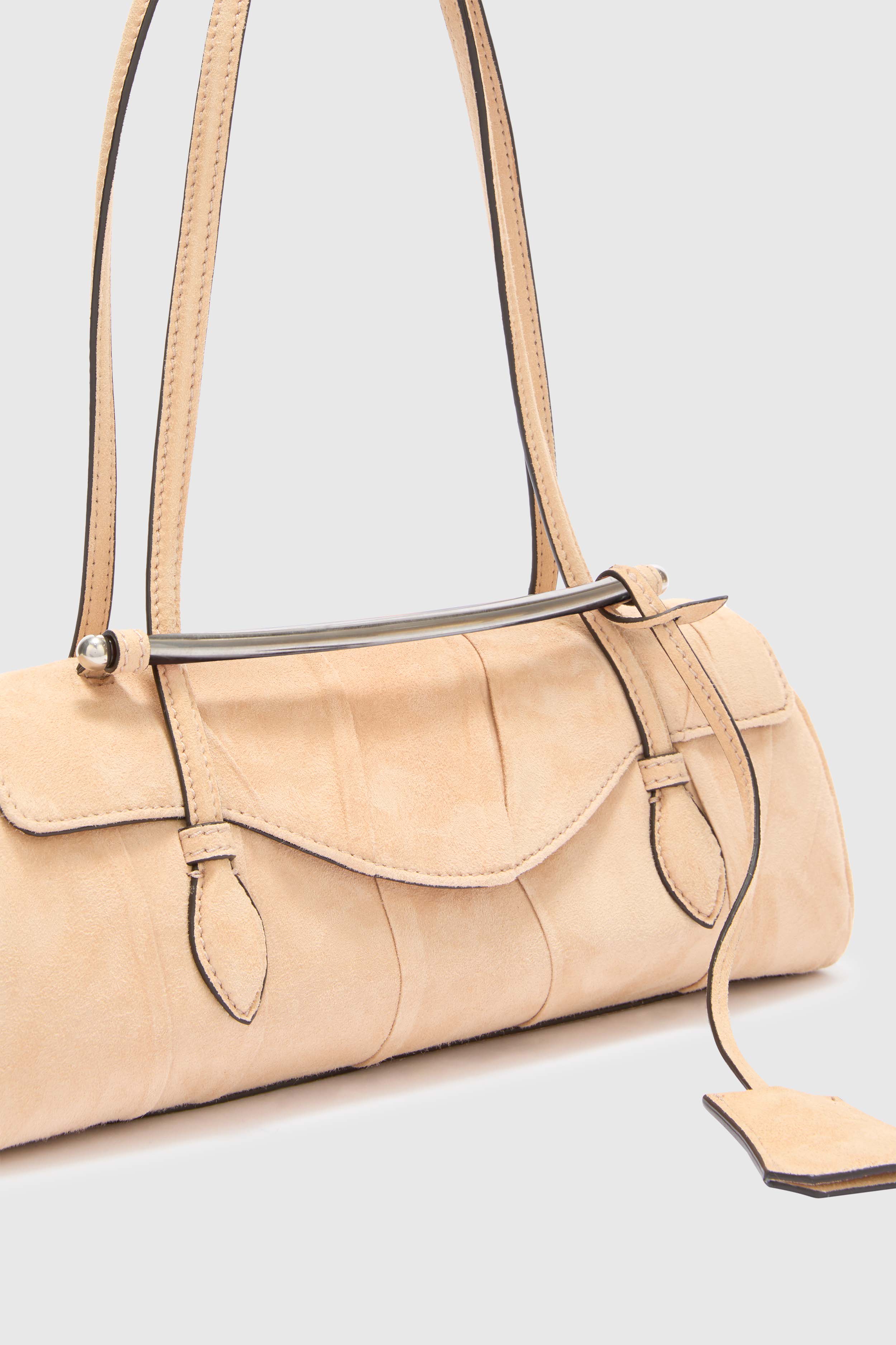 La borsa è arricchita dalla staffa piegata in metallo ad arco con logo inciso, dalla piccola patta chiusa da calamite fasciate in pelle e dai piedini in metallo che proteggono la base, combinando funzionalità e stile. Presentata in sfilata SS26 in abbinamento a un completo sui toni della sabbia composto da pantalone cargo e sahariana con cintura, la Mini Music diventa protagonista di charme e raffinatezza, perfetta per look sofisticati e contemporanei.