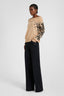 Maglione in puro cashmere con iris ricamato a mano e cristalli