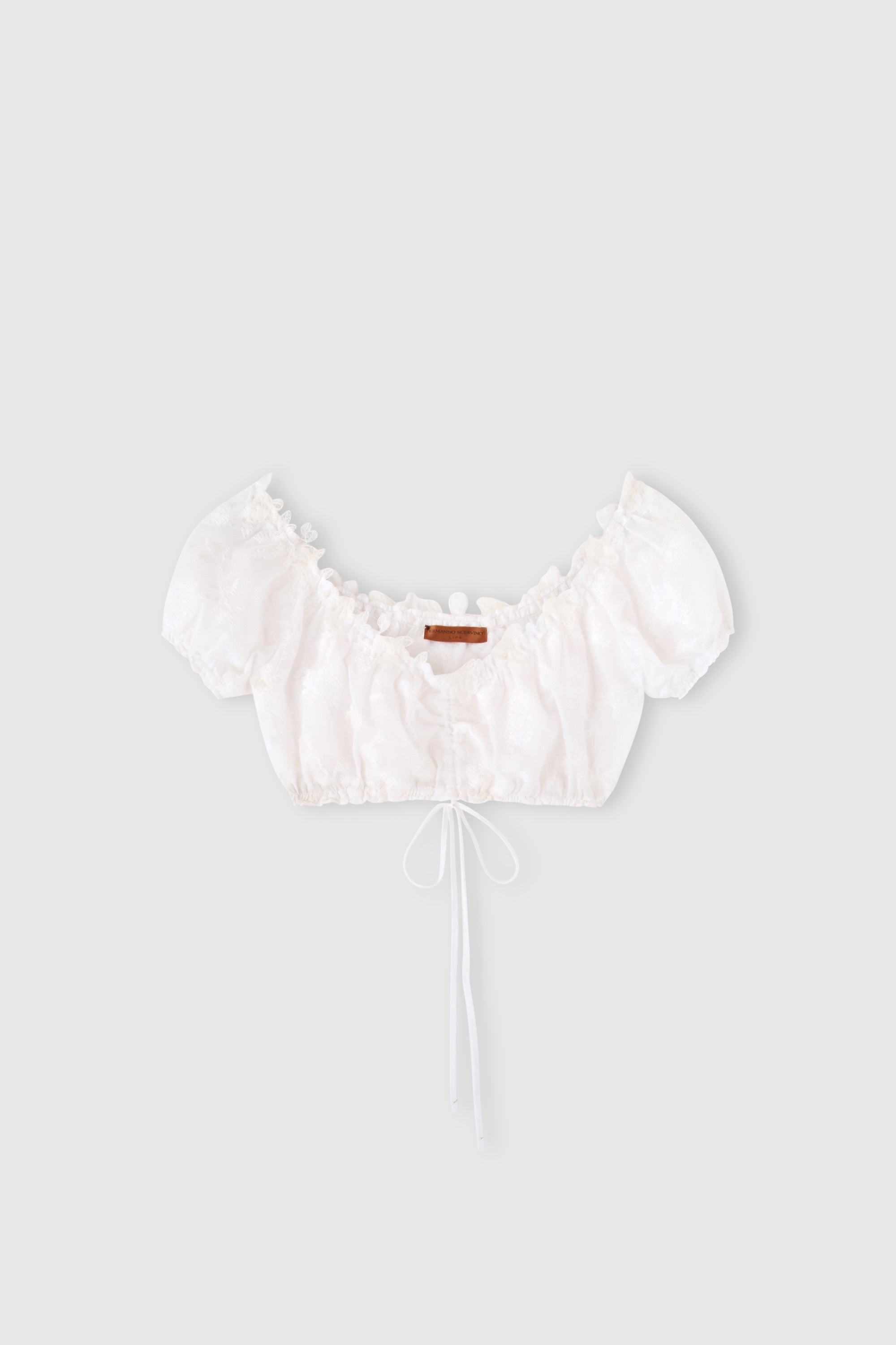 Top a fascia in voile di cotone con ricamo pixel e pizzo