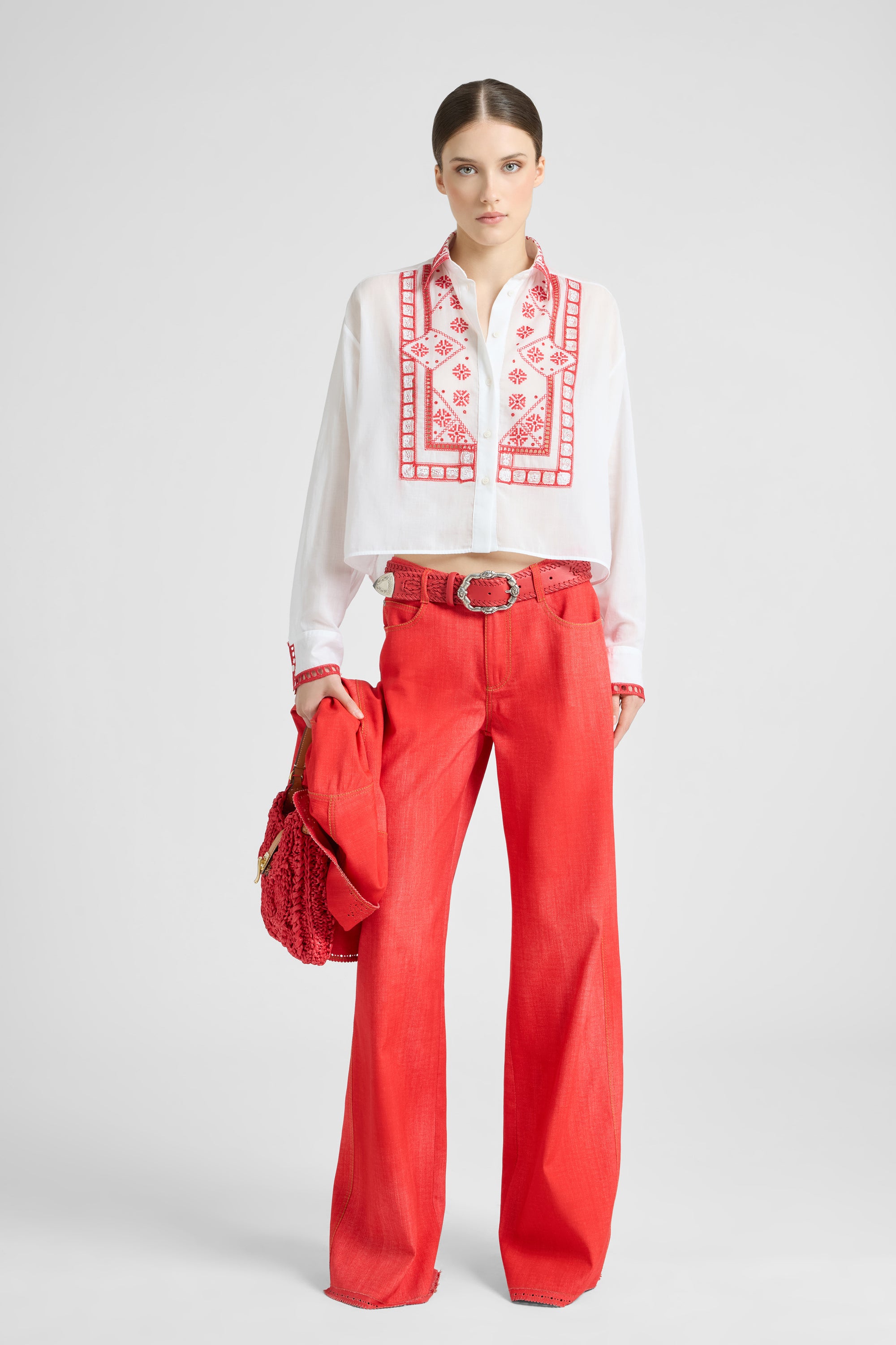 Camicia in mussola di cotone con ricamo Manjaro
