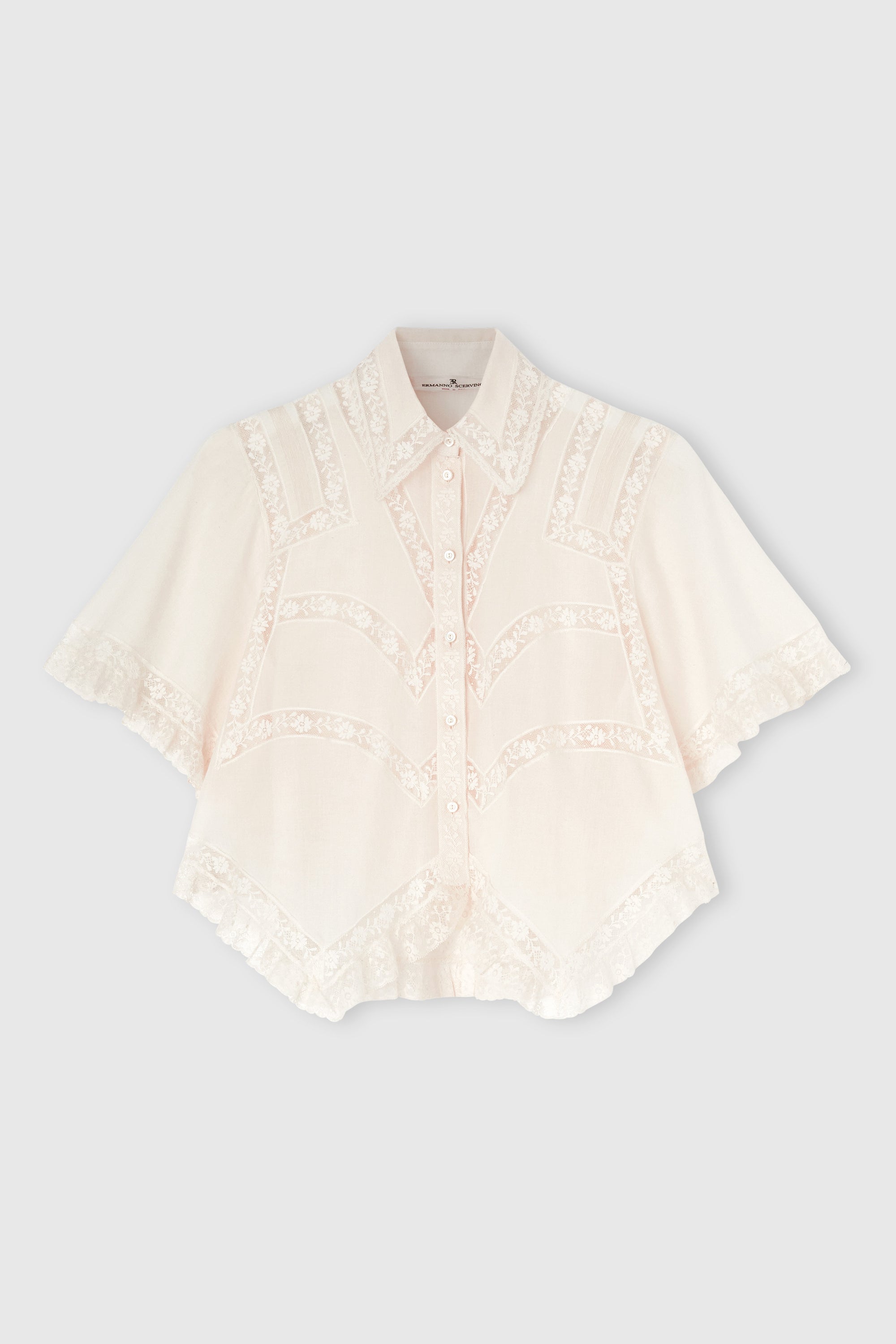 Camicia cropped in mussola di cotone con pizzo Valencienne
