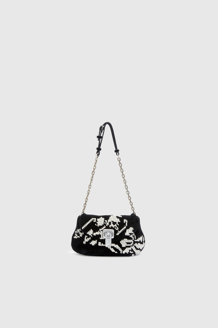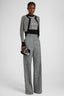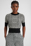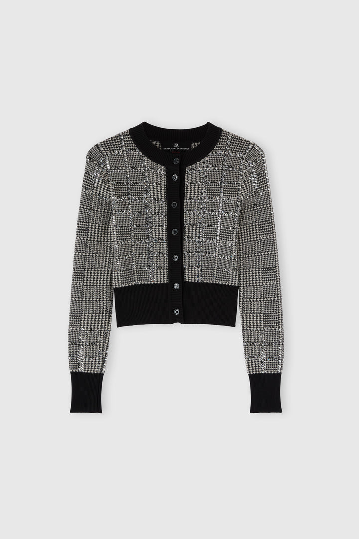 Maglia a mezza manica in misto lana con jaquard pied de poule e cristalli