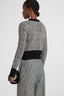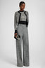 Questo cardigan, realizzato in un pregiato mix di lana vergine e lana merino, riprende l’iconico pied de poule in versione micro e lo intreccia a un disegno Galles grafico e contemporaneo, grazie a una particolare lavorazione jacquard che gioca su pieni e vuoti con precisione sartoriale. Il motivo, ispirato ai tessuti d’archivio della maison, viene esaltato da un’applicazione di cristalli che ne sottolinea l’impatto visivo con tocchi di luce calibrati.