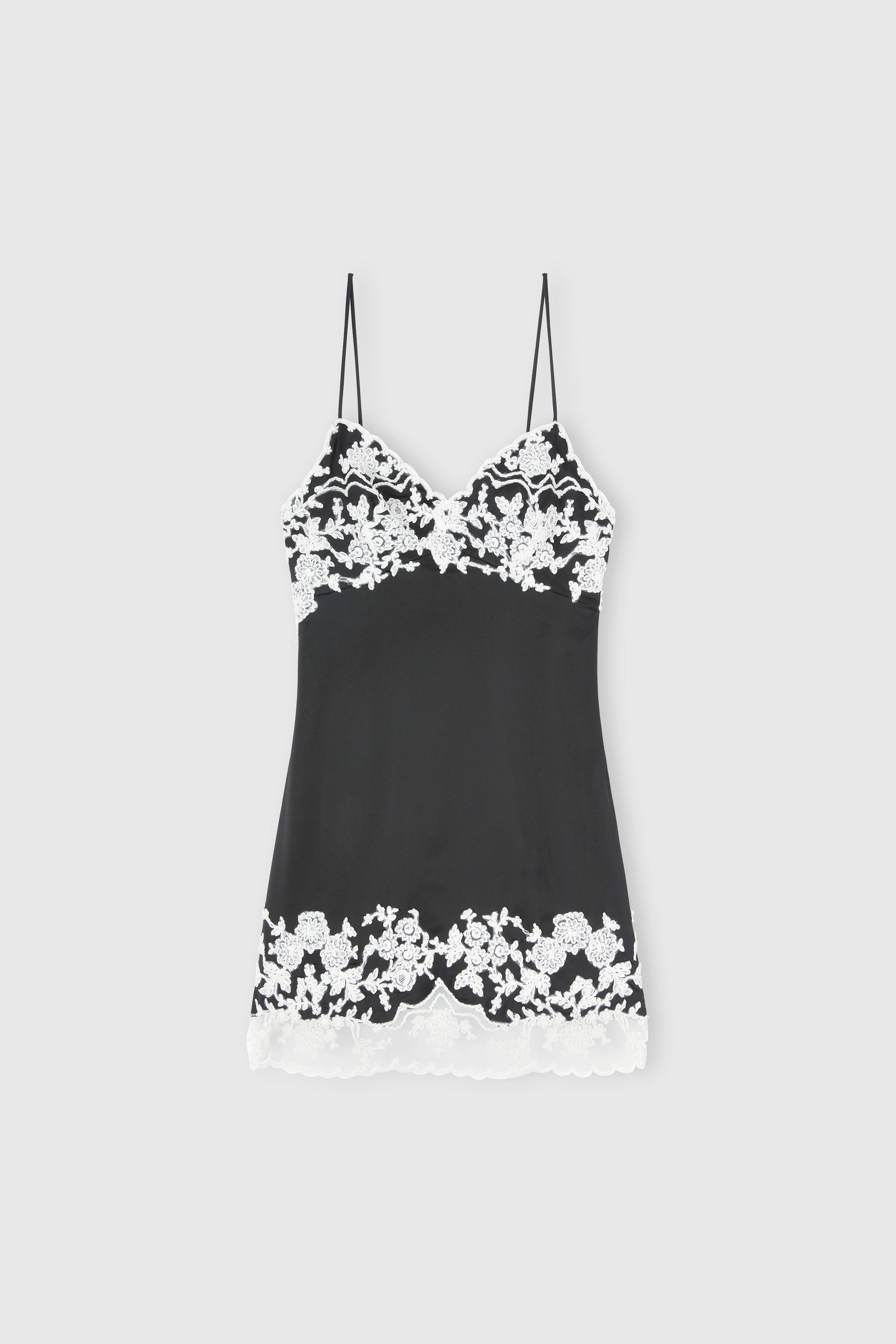 Taglio stile lingerie con spallini fini.