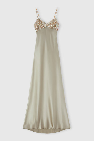 Abito lungo lingerie in satin di seta e paillettes