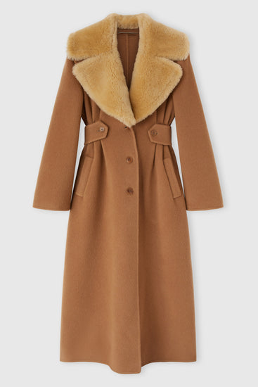 Cappotto lungo oversize in blend di lana, lana vergine e cashmere con rever in pelliccia di alpaca