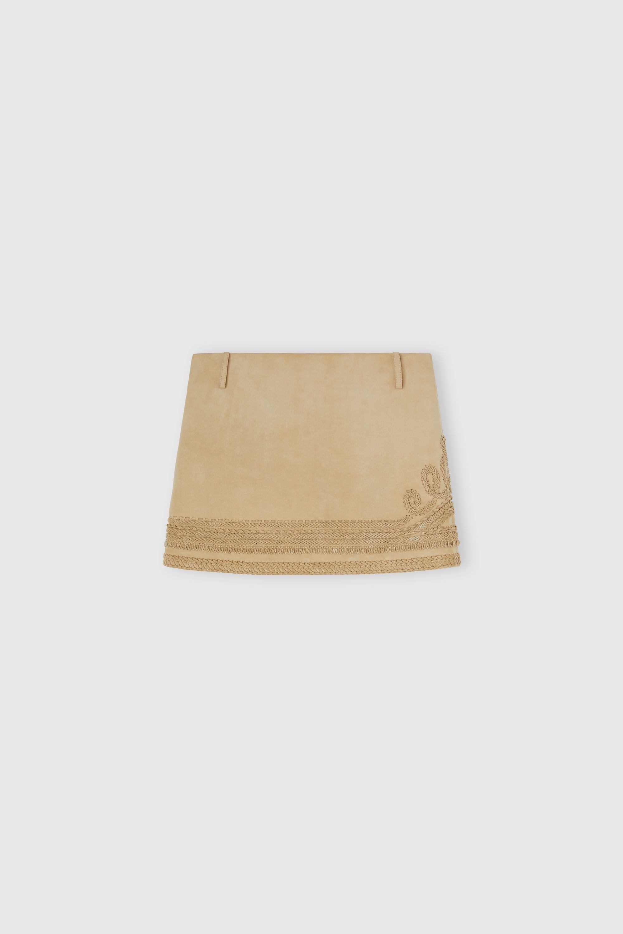 Minigonna in pelle scamosciata con ricamo a mano