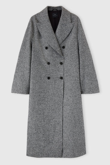 Oversize double-breasted coat in jacquard houndstooth wool blend