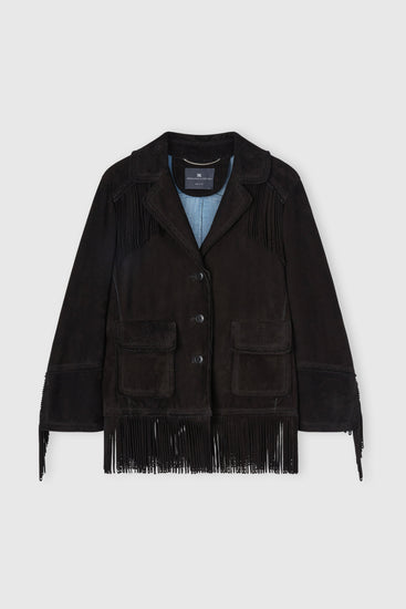 Suede caban with fringes and broguing details